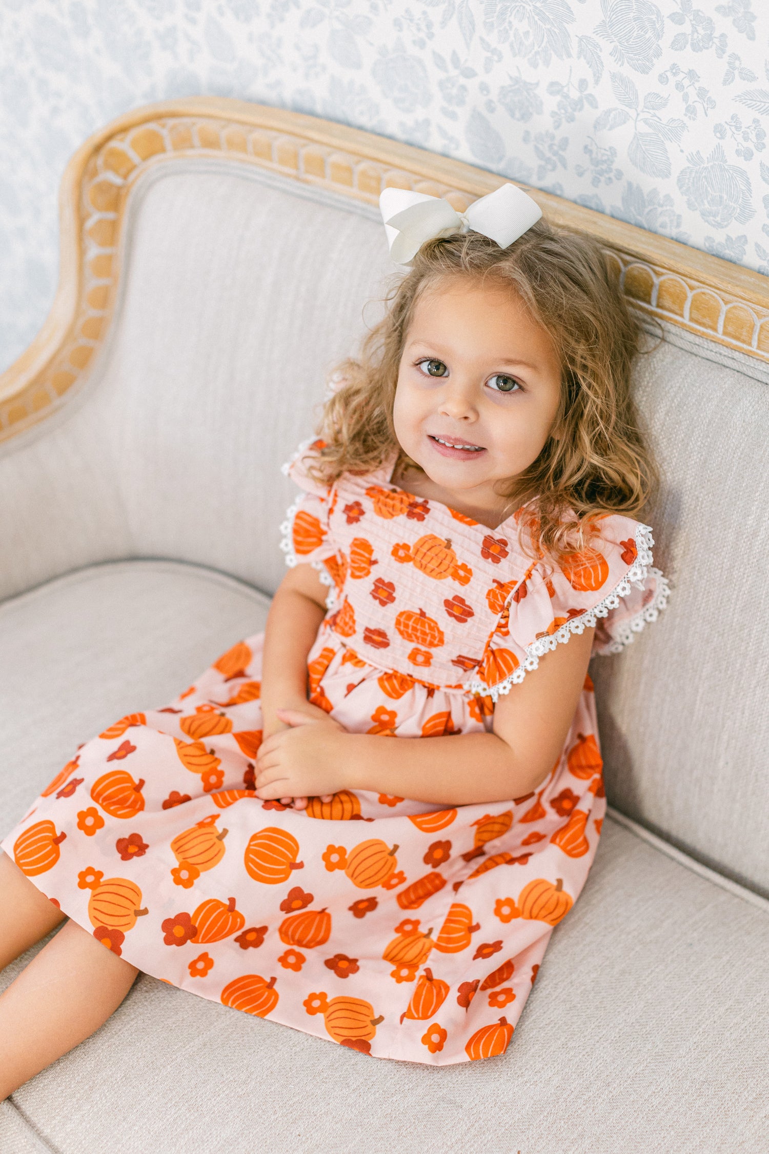 This adorable new style is the best addition for your little girl's fall wardrobe! Flowers + pumpkins, what more could you ask for?