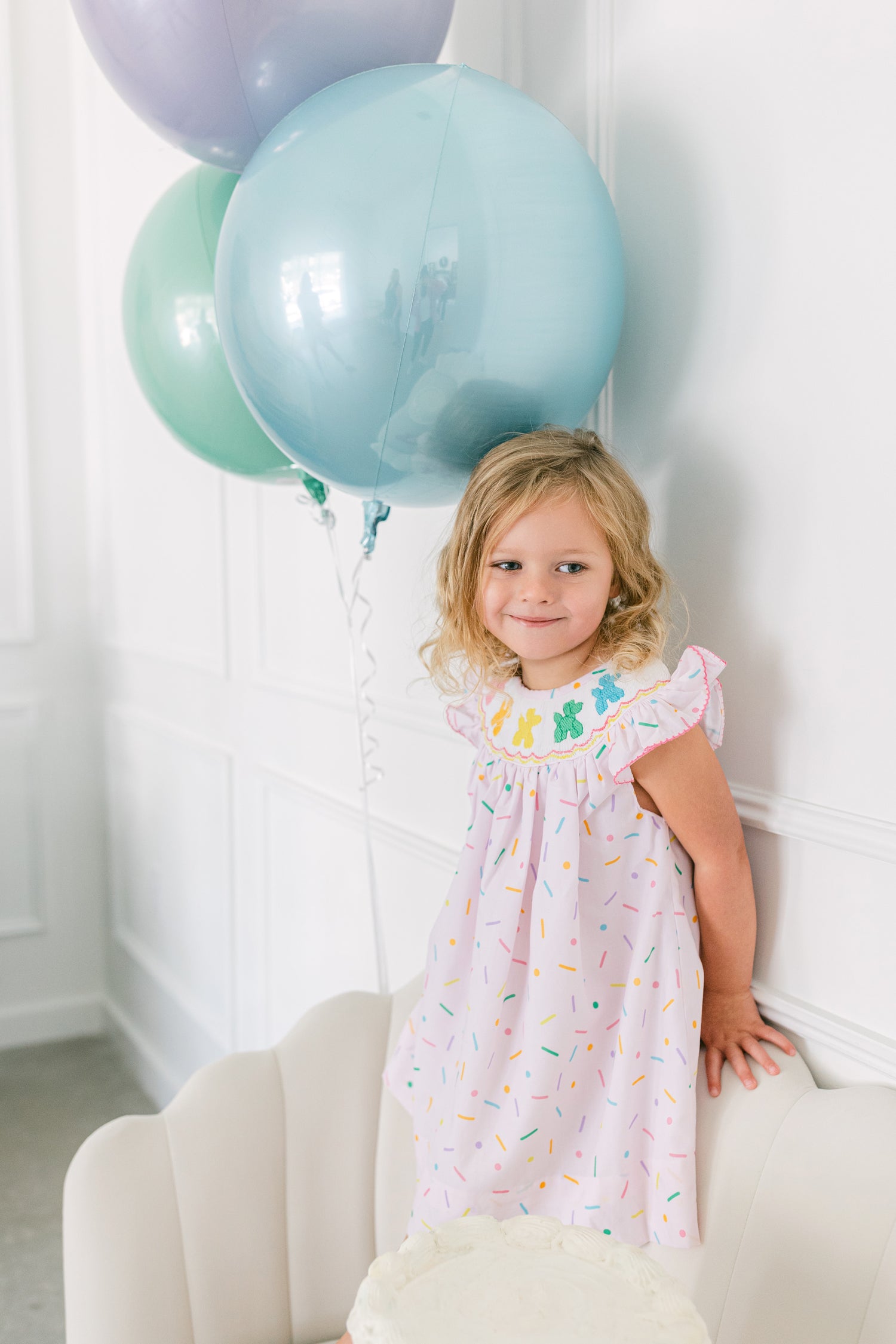 It's time to party! This precious hand, stitched balloon animal smocked outfit is the perfect fit to celebrate life's everyday celebrations.