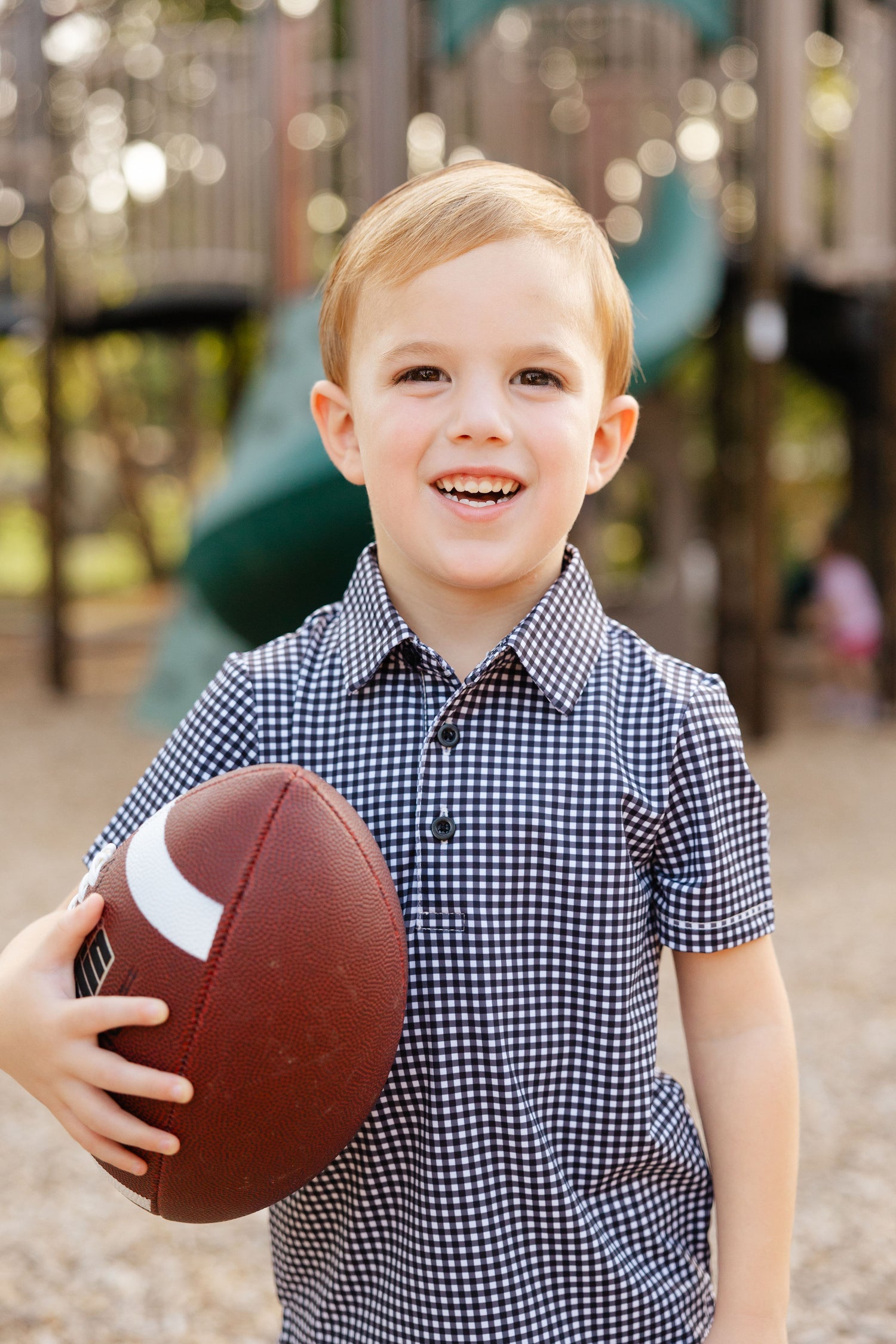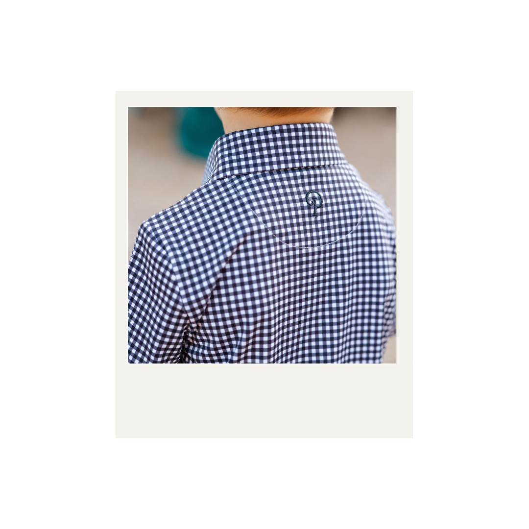 This black and white plaid polo is a closet staple for all seasons, with matching options for dad and sister too!