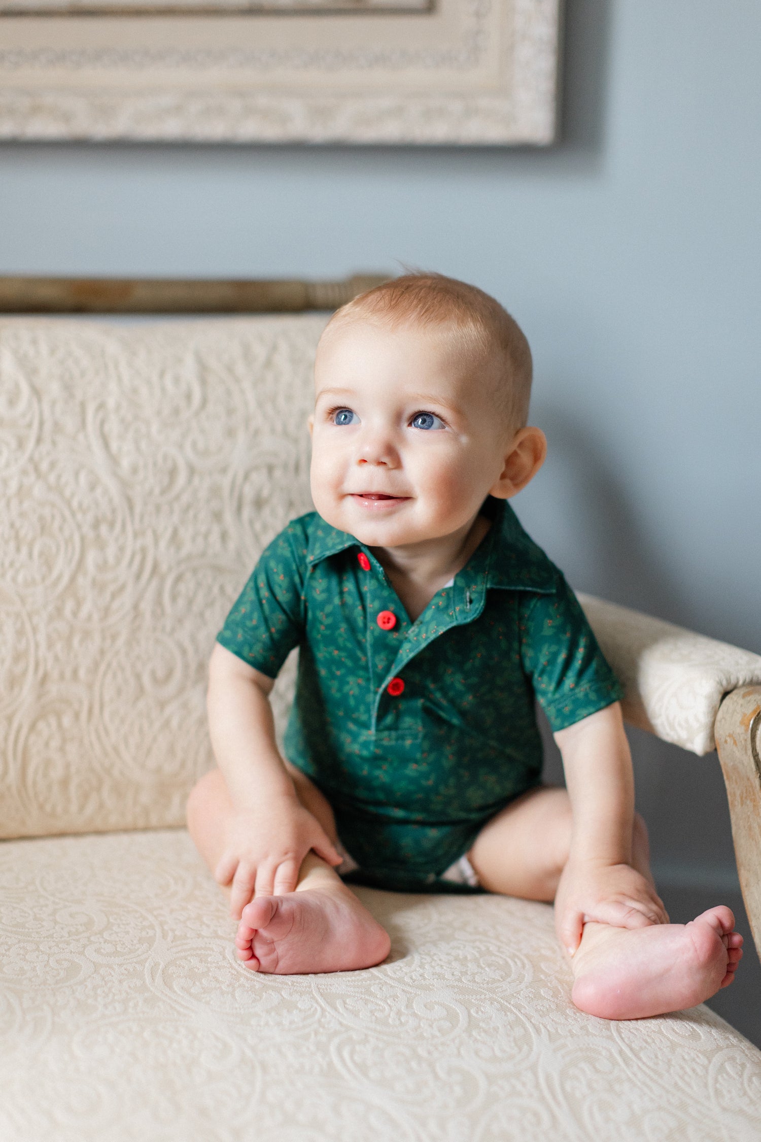 Deck the halls with boughs of holly this Christmas with our charming Holly polo onesie! Perfect for adding a touch of seasonal cheer at parties and family gatherings!