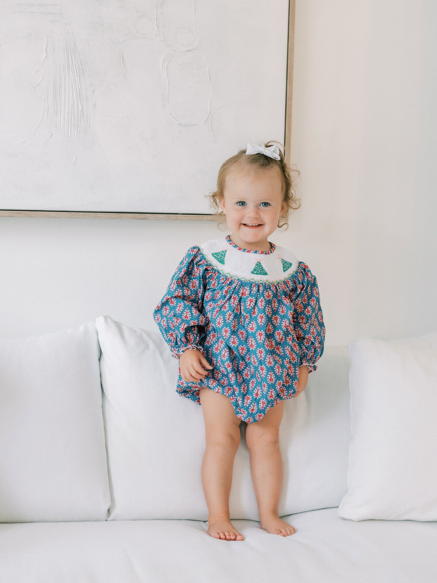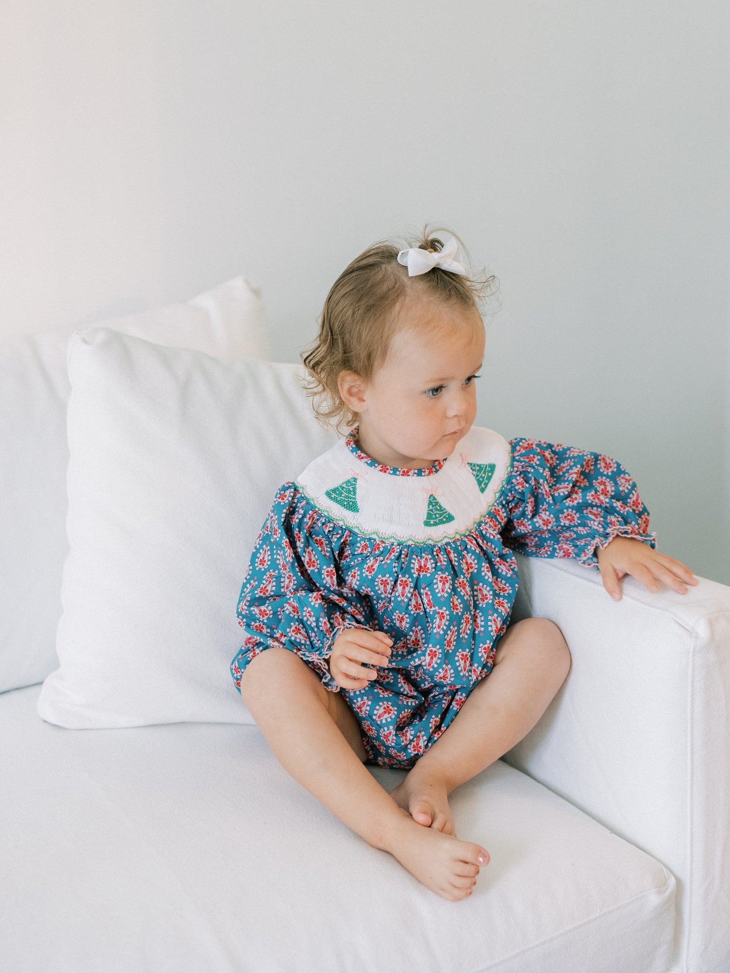 Christmas is coming and we've got the perfect lineup of outfits to get all your little girl's in the holiday spirit, including this precious smocked Christmas tree bubble- a fan favorite from previous years!
