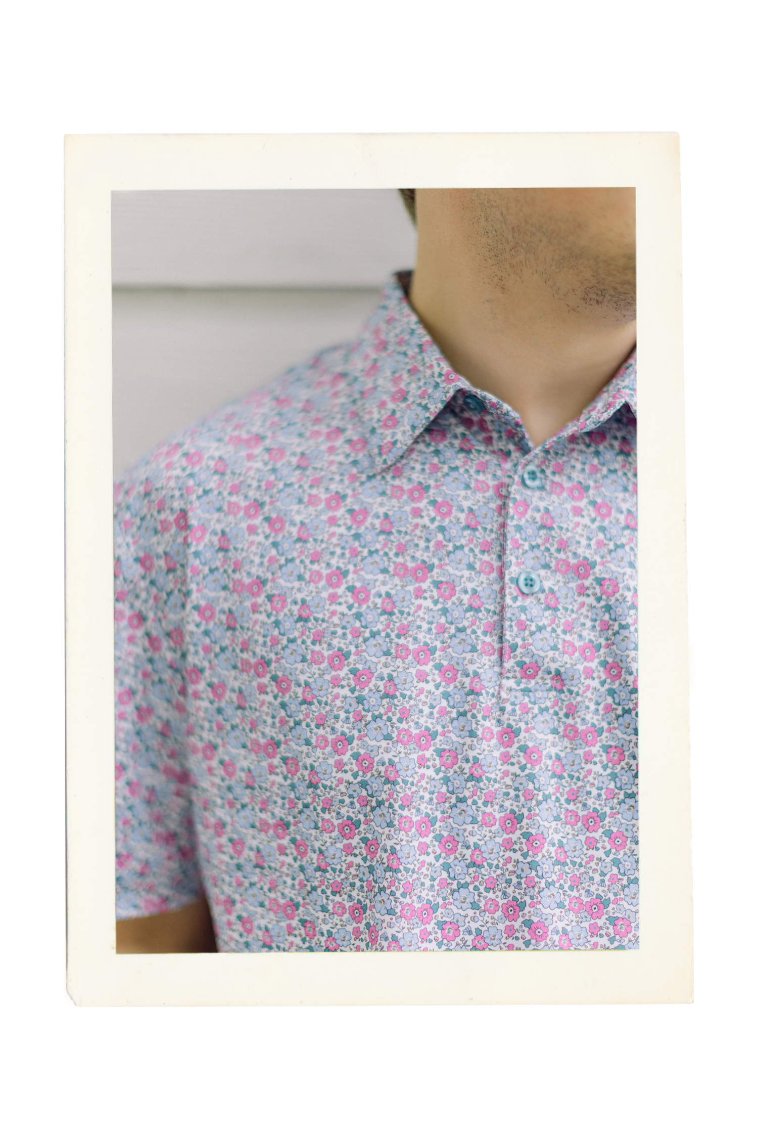 The perfect combination of comfort and fun, this pink and blue floral polo would look great matching all children!