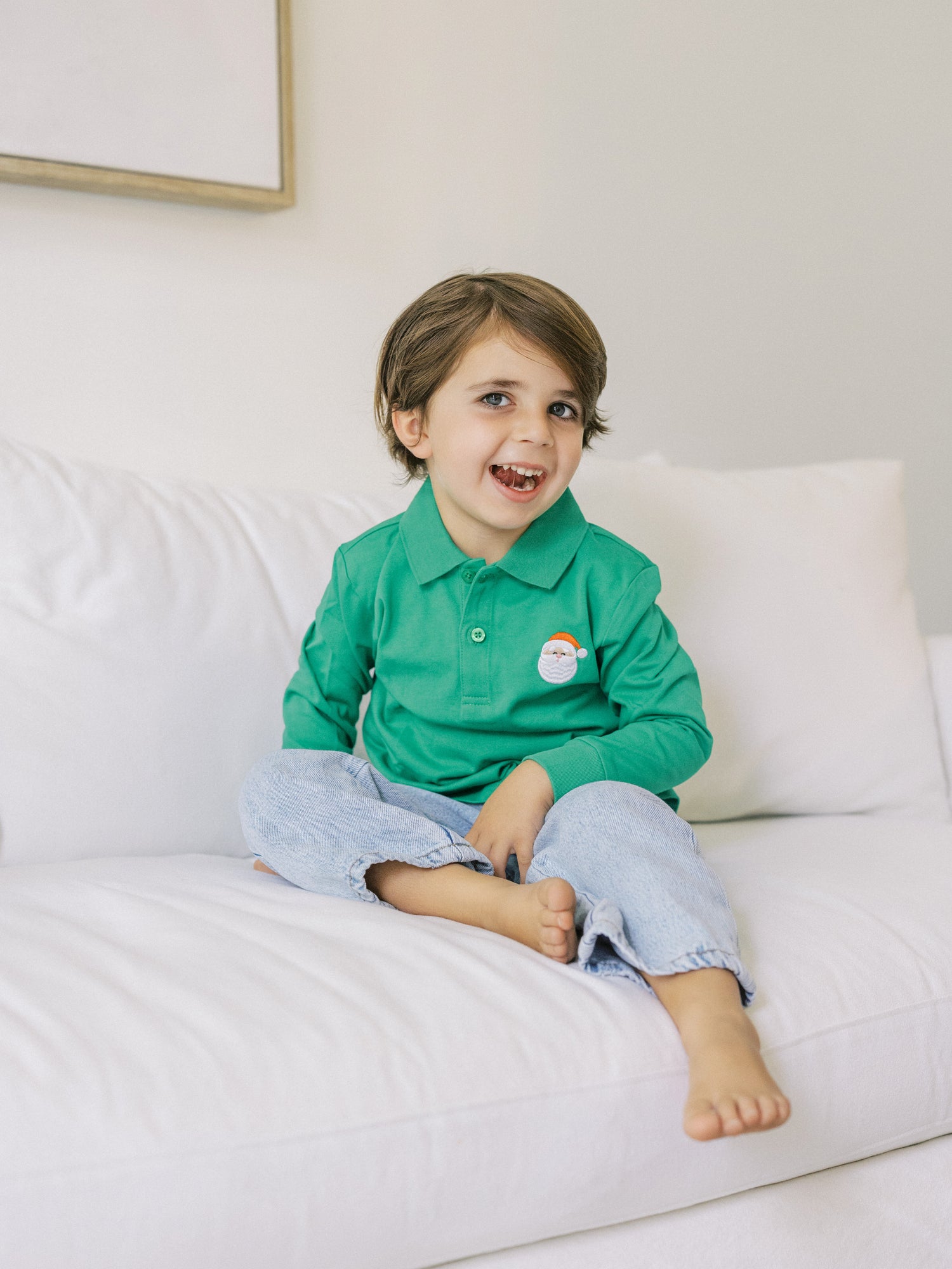 Get ready for the holidays with our Santa Long Sleeve Boys Polo! Perfect for any holiday occasion, this polo pairs well with our Poppy Kids Santa Smock Bubble & Dress !