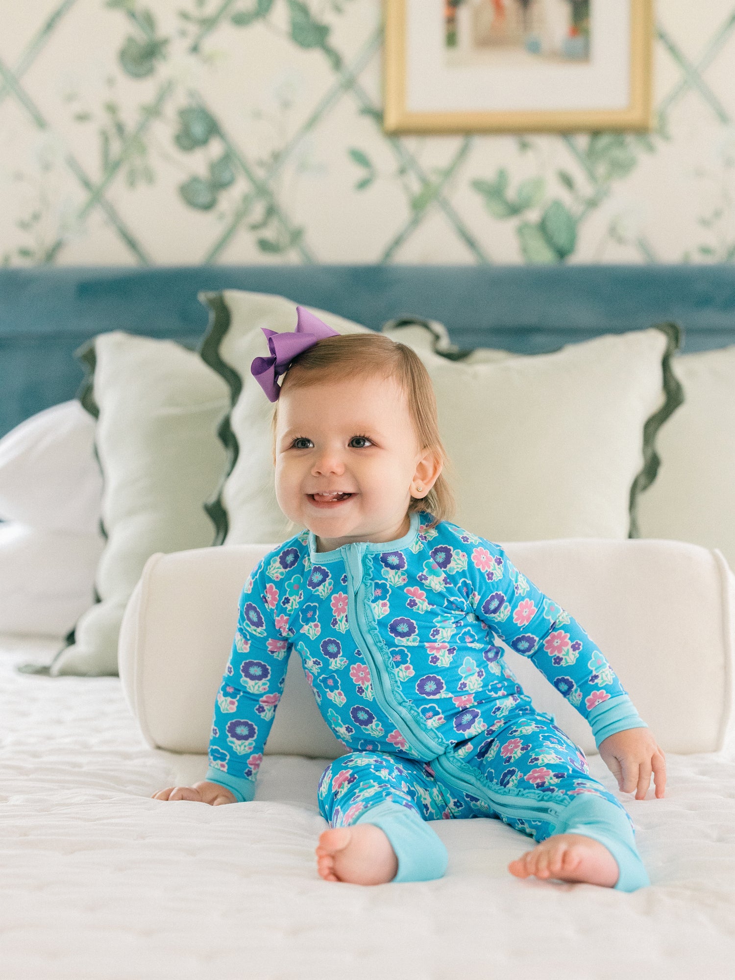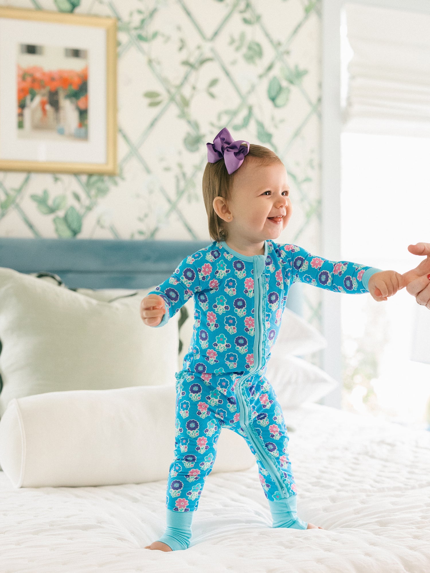 Bright blooms on a cheerful blue backdrop - this happy floral print is perfect for adding a pop of color and sweet charm to cozy pajama days and dreamy nights.
